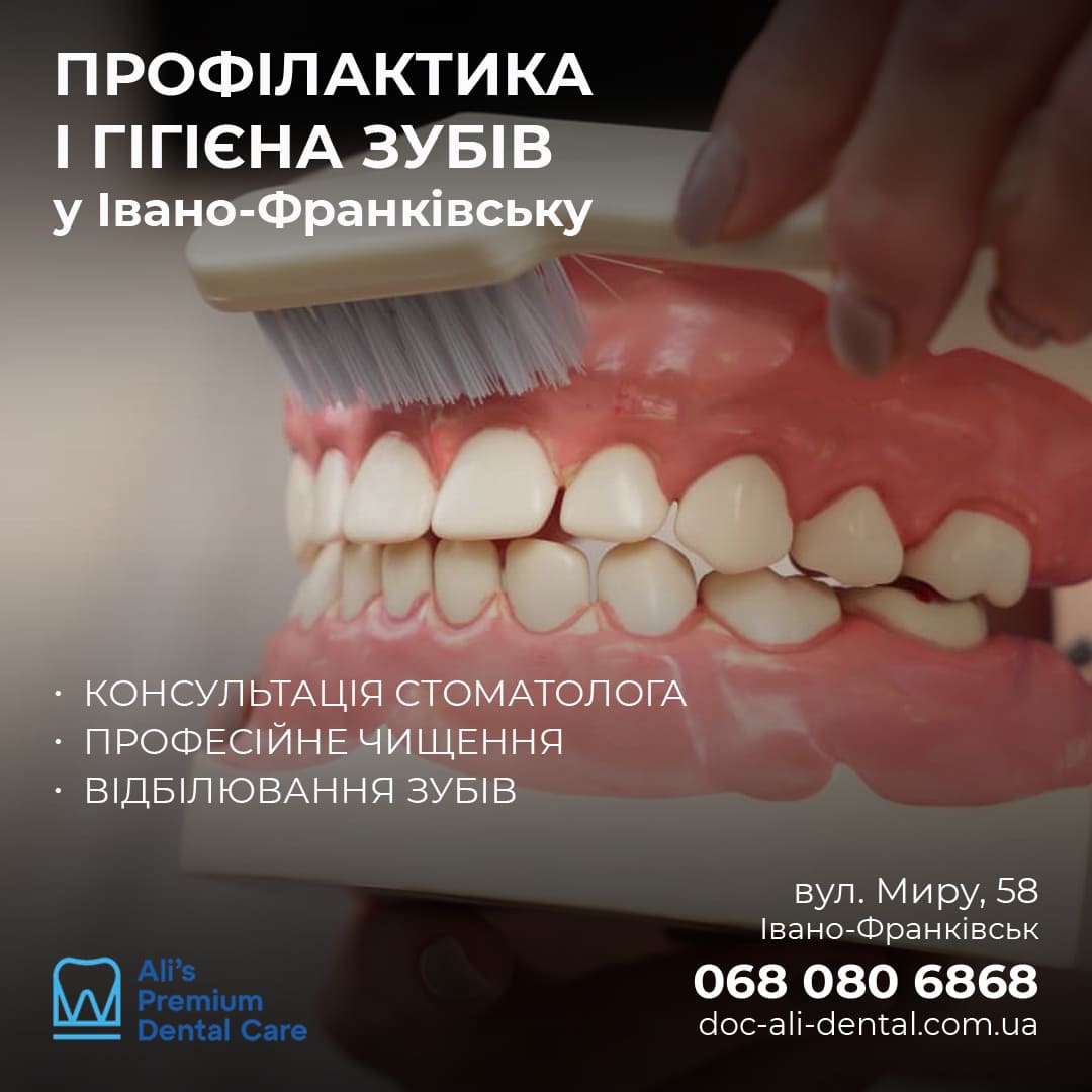 Ідеальна чистота зубів є запорукою збереження здоров’я ротової порожнини. Професійна гігієна в клініці Ali Dental (Івано-Франківськ) – гарантія безболісної, абсолютно безпечної для емалі маніпуляції. Лікарі подбають про комплексний догляд, який складається з кількох етапів: